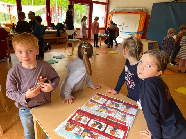 Dann wurden die 17 Kinder in 4 Gruppen zur Stationsarbeit aufgeteilt.