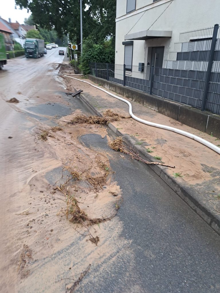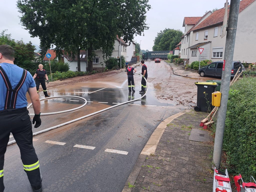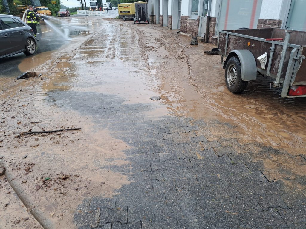 Nach unwetterartigen Regenfällen in der vergangenen Nacht waren in vielen Orten im nördlichen Landkreis Bäche über die Ufer getreten, hatten Straßen überflutet und Keller unter Wasser gesetzt.