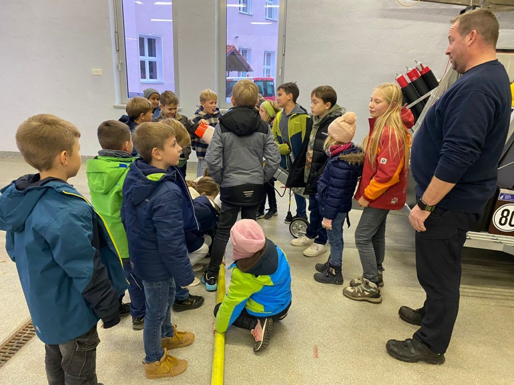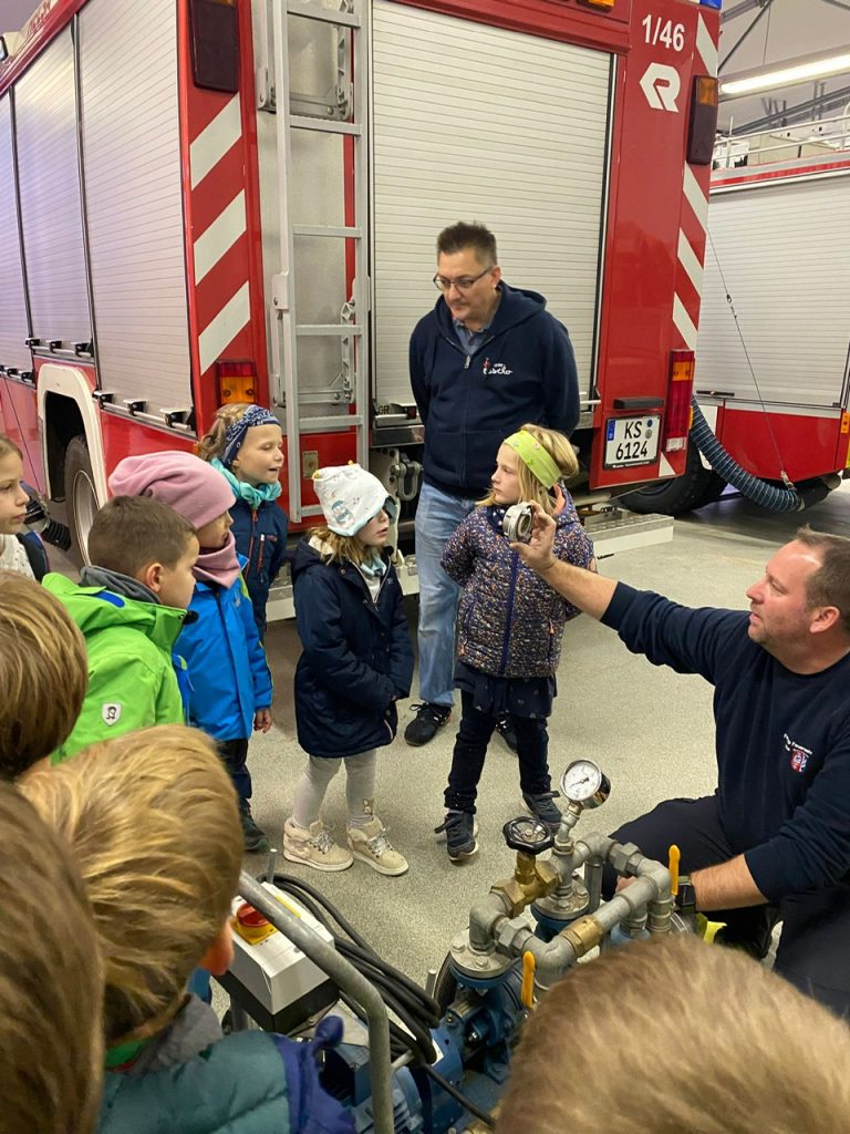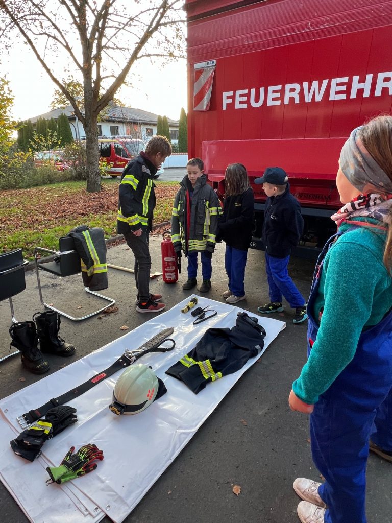Weiterhin sollten die Kinder auch noch die persönliche Schutzausrüstung eines Feuerwehrangehörigen und im besten Fall die Eigenschaften benennen. So dass zum Beispiel unsere Kleidung schwer entflammbar ist und auch unsere Stiefel besondere Schutzeigenschaften besitzen.