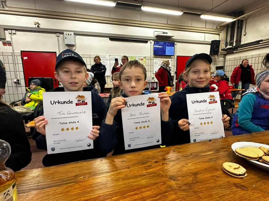 Natürlich haben alle Gruppen bestanden und zum Abschluss eine Urkunde sowie das vierte Tatze Abzeichen bekommen. Die Kinder haben sehr viel gewusst und die Stationen mit Bravour abgeschlossen. Wir sind sehr stolz auf unsere Losselöscher!