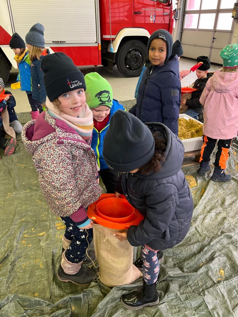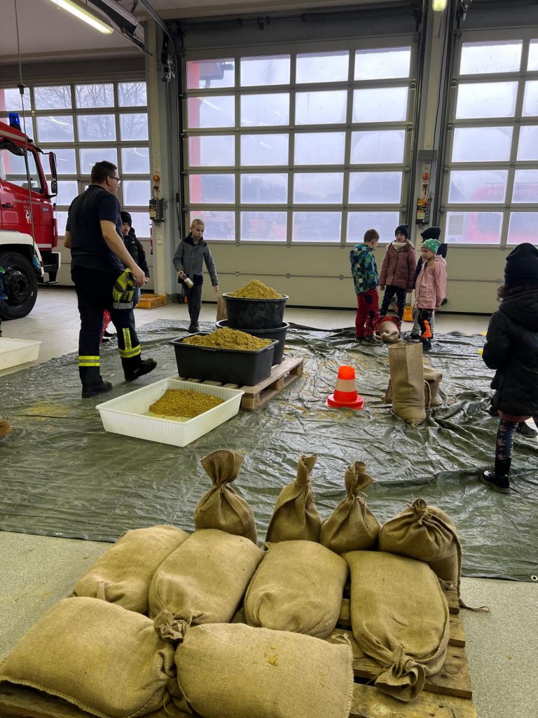 In diesem Dienst haben die Kinder Sandsäcke gefüllt, die im Falle von Hochwasser von der Einsatzabteilung genutzt werden können. Das war für die Kinder natürlich ein tolles Erlebnis.
