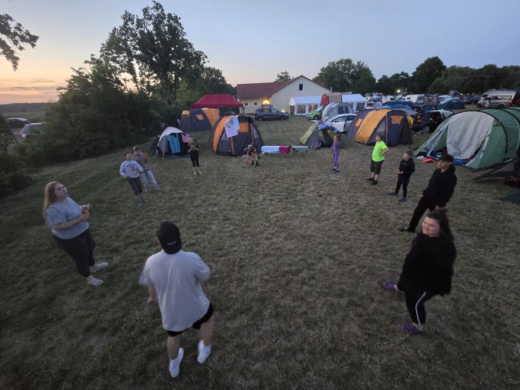 Am Donnerstagmorgen ging es endlich los: Wir trafen uns um 10 Uhr an der Feuerwehr in Helsa, alle mit gepackten Taschen, Schlafsäcken und richtig guter Laune. Nach etwa einer Stunde Fahrt kamen wir am Neuenhainer See an. Dort wartete schon das Zeltplatzgelände auf uns – direkt am Wasser und richtig schön gelegen. Kaum ausgestiegen, ging’s auch schon los: Zelte aufbauen, Schlafplätze herrichten, Tische und Bänke aufstellen. Jeder half mit, und so war unser kleines Lager schnell fertig.