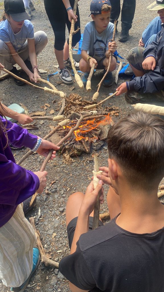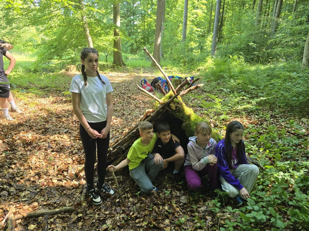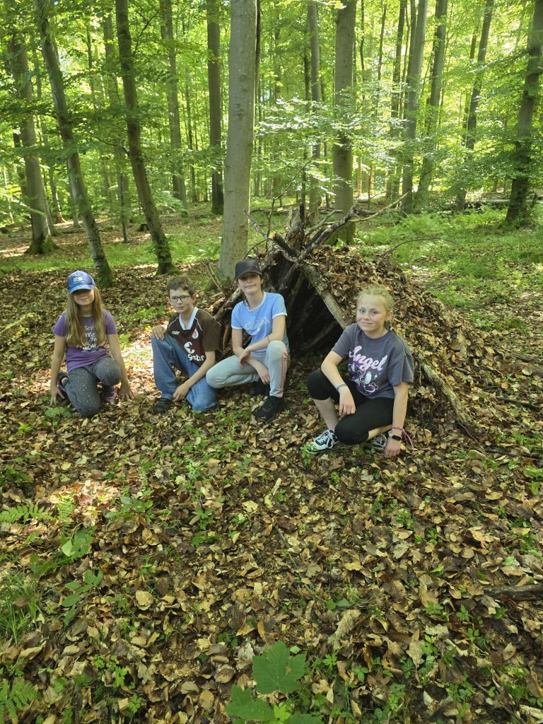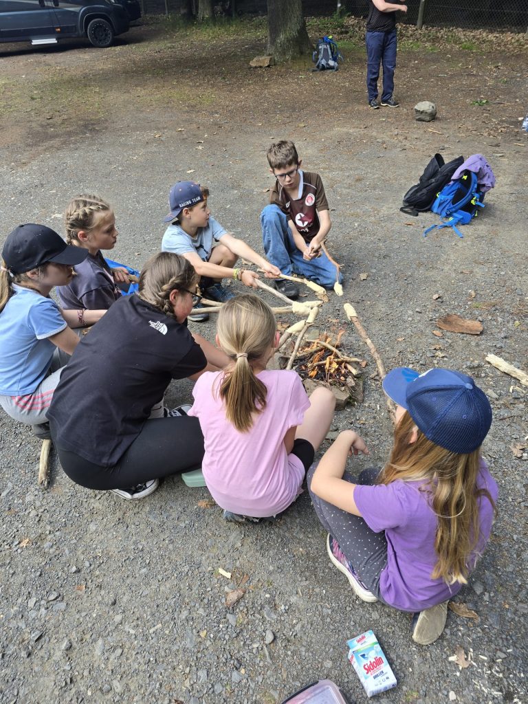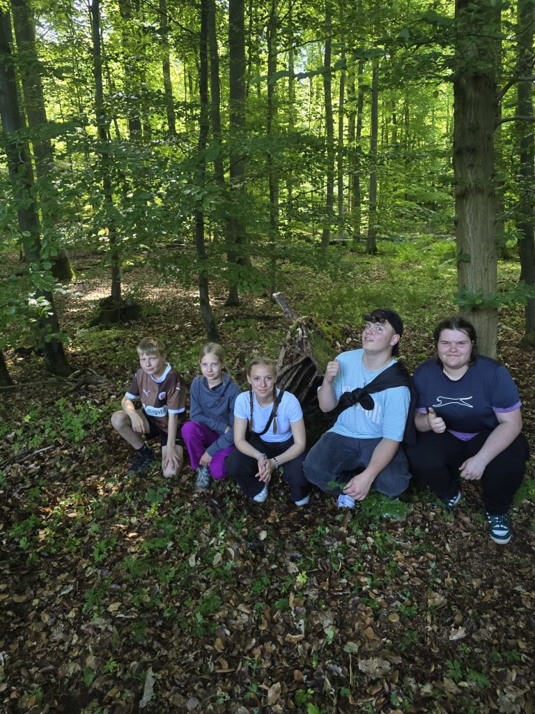 Am nächsten Morgen hieß es früh raus – vor dem Frühstück stand Frühsport auf dem Plan. Eine Joggingrunde um den See war zwar anstrengend, aber irgendwie auch cool, gemeinsam den Tag so zu starten. Danach bekamen wir alle Lunchpakete, denn ein Ausflug stand an. Unser erstes Ziel war der Wildpark Knüll. Dort haben wir an einem „Abenteuertag“ teilgenommen. Wir haben in Gruppen kleine Hütten gebaut – mit Stöcken, Laub, Moos und allem, was wir im Wald finden konnten. Dann haben wir zusammen Teig gemacht und den über einer selbstgemachten Feuerstelle gebacken. Das hat nicht nur Spaß gemacht, sondern auch echt gut geschmeckt.