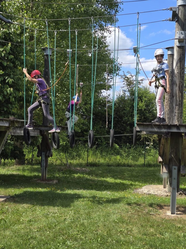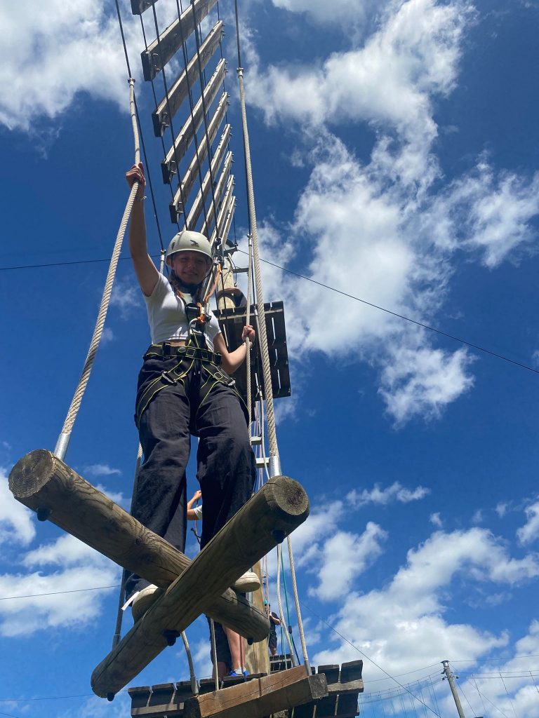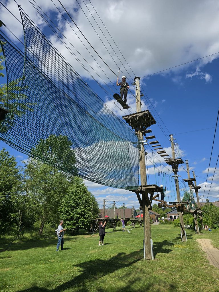 Danach bekamen wir noch eine Führung durch den Wildpark. Wir haben Wildtiere wie Rehe, Bären, Wölfe und Luchse gesehen – richtig spannend. Danach fuhren wir weiter zum Silbersee. Dort hatten wir erstmal eine Pause. Im Anschluss ging es in den Kletterwald. Das war für viele von uns das absolute Highlight. Die Parcours waren ziemlich unterschiedlich – von eher leicht bis ganz schön hoch. Am besten war die lange Seilbahn ganz oben, mit der man voll schnell wieder runtergedüst ist. Fast alle haben mitgemacht, auch wenn ein paar anfangs etwas Respekt hatten – am Ende war jeder stolz auf sich.