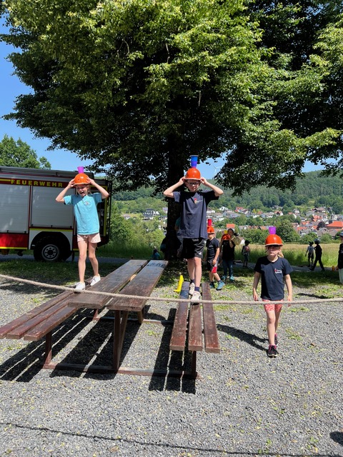So ging die eine Gruppe mit dem Ranger auf „Spurensuche im Wald“ und die andere Gruppe hat das „Überleben im Wald“ geprobt. Für die beiden anderen Gruppen waren verschiedene Spielstationen am Honighof aufgebaut. Sie konnten ihr Geschick bei einem Hürdenlauf mit gefüllten Wasserbecher auf dem Helm unter Beweis stellen oder beim Armaturen-Tic-Tac-Toe bis zum Sieg taktieren. Spannend wurde es hier als die Kids gegen die Betreuer angetreten sind. Hier haben nicht immer die Betreuer gewonnen.
