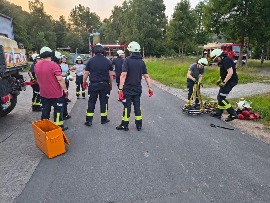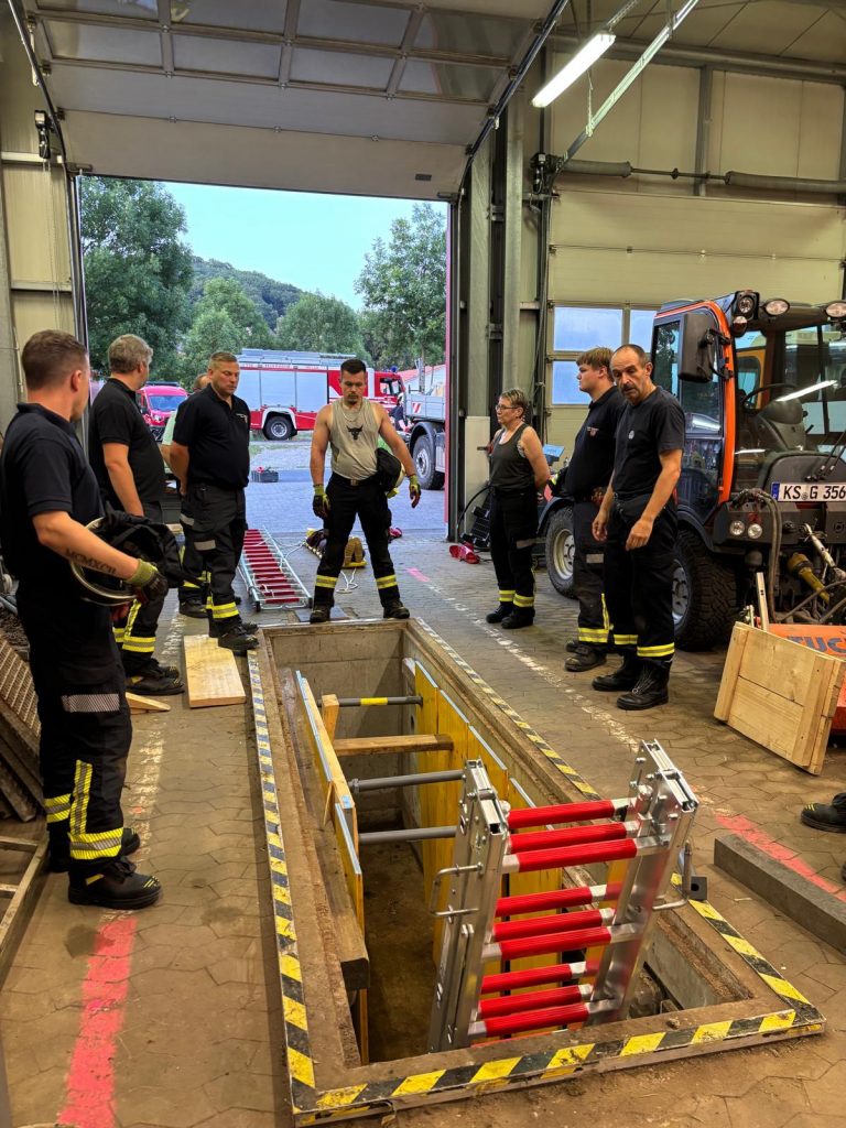 Am 15. August fand ein Übungsdienst zum Thema Technische Hilfeleistung Bau statt. Daran nahmen rund 38 Kameradinnen und Kameraden aus Eschenstruth, Wickenrode und Helsa teil. Damit im Ernstfall alles reibungslos funktioniert und jeder Handgriff sitzt, unterstützte uns auch die Feuerwehr Kaufungen mit ihrem Wechselladerfahrzeug (WLF) und dem Abrollbehälter Rüst (AB-Rüst). Dieser kommt insbesondere bei Schadenslagen zum Einsatz, bei denen umfangreiches Werkzeug sowie Abstützmaterial benötigt wird.