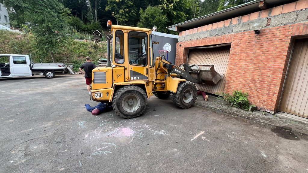 Nach dem geplanten Dienstsport folgte ein weiterer Übungseinsatz: ein „H2Y – Unfall mit drei eingeklemmten Personen“. Die Szenarien reichten von einem Kind, das unter einer Gitterbox und einer Baggerschaufel lag, bis hin zu Personen, die unter einem Radlader und einem Garagentor eingeklemmt waren. Mit Hebebaum, Lufthebern und viel Teamarbeit konnten wir alle Übungspuppen erfolgreich retten.