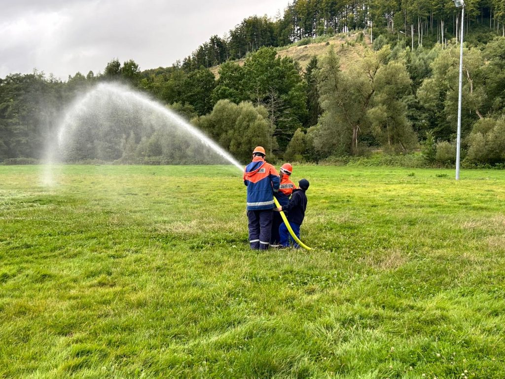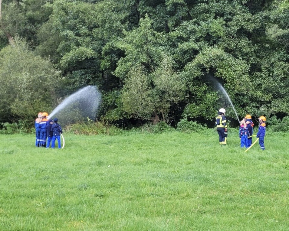 Schon beim Eintreffen der Kinder und Jugendlichen zeichnete sich ab, dass wir heute nicht nur durch das Wasser der Löschübung nass werden würden. Das Wetter wechselte zwischen Schauern und Sonnenschein und auch ein Donnergrollen war schon zu hören. Wir waren trotzdem positiv gestimmt und ein Blick auf das Regenradar zeigte ein trockenes Zeitfenster.
